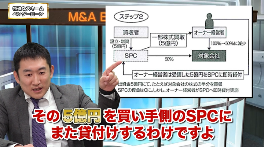 つまり何が起こるかというと、SPCが100%買収してその対象会社と合併して、最終的には投資家側は100%対象会社の株式を持つことになり、一方で売り手は対象会社に貸付けをしているんです。