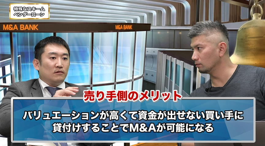 このスキームのいいところは、売り手からするとバリュエーションがそこそこ高くて、買い手がその資金を出せない場合でも、売り手が貸し付けをすることで買えるようになるところですね。