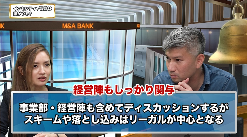スキームや実際契約書に落とし込むところは当然リーガルが中心ですけれど、この人達とどういう形で働きたいかとか、何を期待しているかというところや、人間関係とか信頼関係みたいなところも含めての話になるので、その辺りは経営陣もしっかり関与してディスカッションしながら決めることが多いと思います。